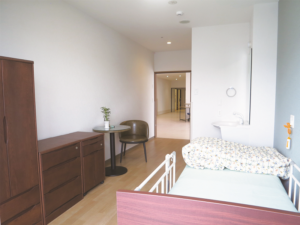 今日は、施設内のユニット型の居室例を紹介します。落ち着いた感じのお部屋です(*^ー^*)