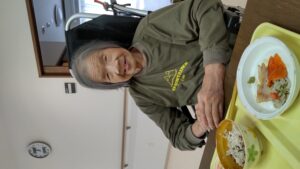 利用者様に「今日は何の日でしょうか?」と尋ねると、「母の日!」や、「何の日やったかな?」、「母の日かぁ、あなたは何かプレゼントしたの?」と返答は様々で面白かったです(^^♪