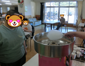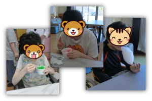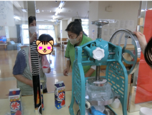 おやつの時間にかき氷と綿菓子を実演・提供しました。