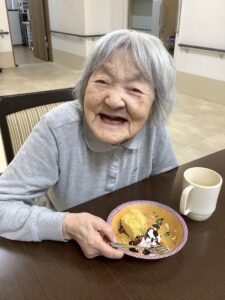 「ハッピーハロウィン🎃」ということでハロウィンは栄養士手作りのさつま芋のパウンドケーキを召し上がっていただきました✨
