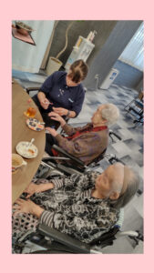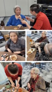 チョコソースをトッピングして、召し上がっていただきました😊💕 お好きなコーヒーや紅茶を選んでいただき、職員も一緒にティータイムをしました☕