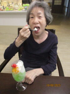 ゼリーの他にさくらんぼ、みかん缶、バニラアイスをトッピングしました♪