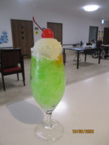 オレンジ神戸2階にて昨年も行った、クリームソーダ風ゼリーを作成しました◎