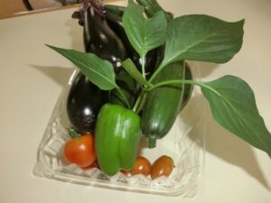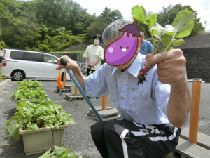 毎日毎日大量のキュウリとナス、トマトが収穫でき、デイ利用者様にお持ち帰り頂いた以外にも職員にも販売するほどの量!(職員に販売した収益でデイフロアにかっこいいデジタル時計を購入しました)