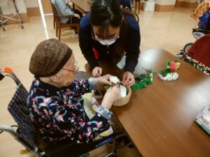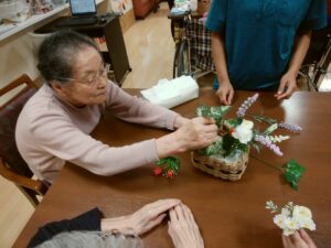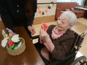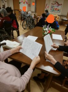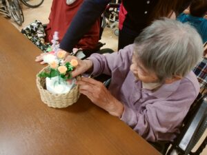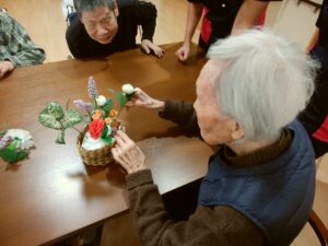 皆様、思い思いに花を挿していかれ、きれいに出来上がりました✨ そして、作成後は一緒に楽しく発声♫♪