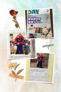大阪万博のキャラクター(ミャクミャク)をお花紙で制作し、月刊デイに応募し