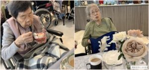 ミルクプリンに生クリームを絞り、苺ソースをかけてコーヒーとお召し上がりいただきました🍓