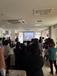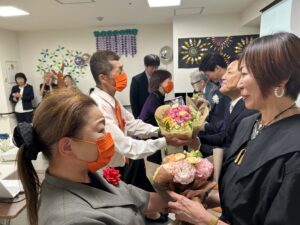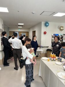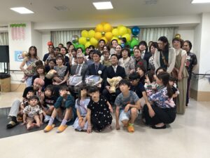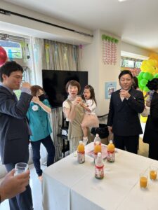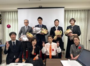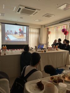 第二部 祝宴 「スタッフや家族と乾杯」 「スライドショー サプライズ有」 「施設長・専務の挨拶」 「記念撮影」 おかげさまで無事に終えることが出来ました。 またこれからも職員一同、ご利用者様・ご家族様のご期待に沿えるように精進して参ります。