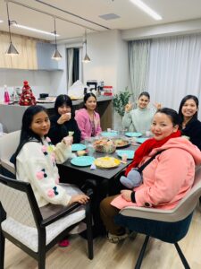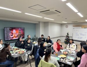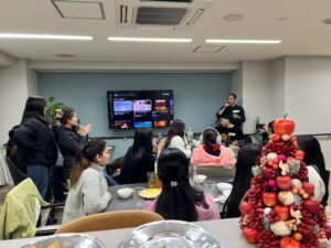 最後に盛り上がりそうな日本のゲームを考えていたのですが、全員で日本の歌や母国の歌などを合唱していたら時間が経ってしまいクリスマスパーティは終了となりました。カラオケは全国共通皆さん大好きなんですね🎤